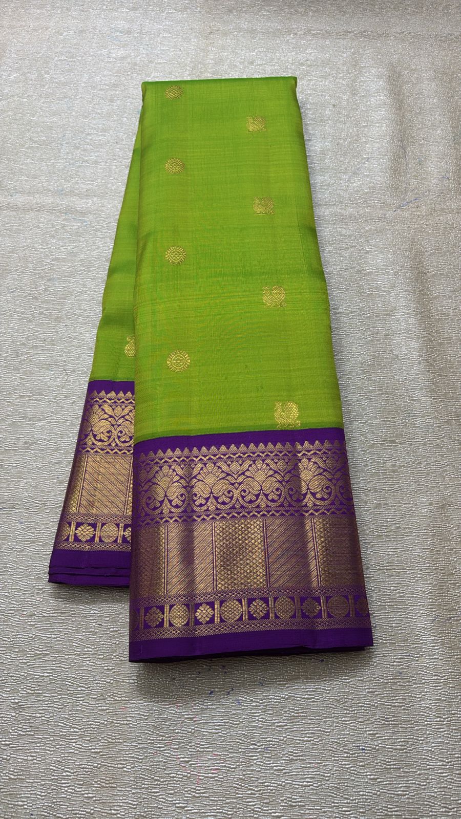 Experience the refreshing charm of this vibrant green silk saree, a perfect blend of lively color and traditional craftsmanship. This saree features a bright lime green hue, crafted from a luxurious silk blend that offers a smooth, rich texture and a graceful drape.