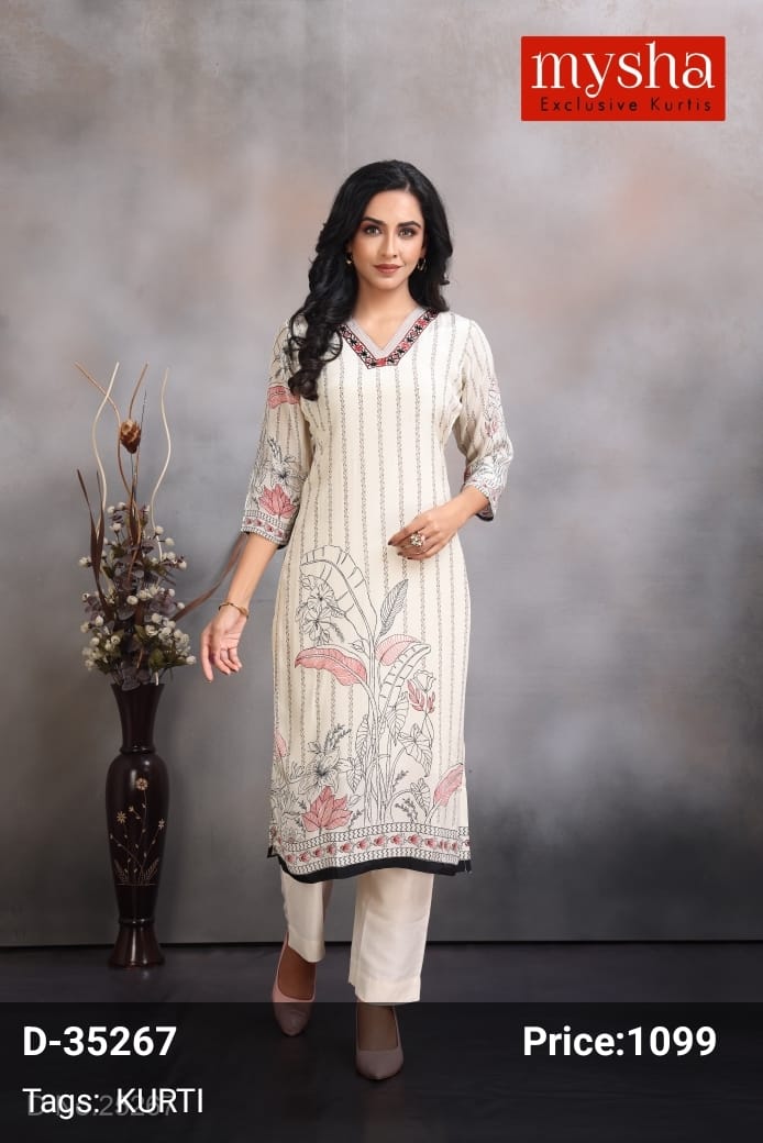 "Introducing the Mysha D-35267 Exclusive Kurti, a beautifully designed kurti perfect for a variety of occasions. This kurti features a unique design, adding a touch of contemporary style to traditional attire.