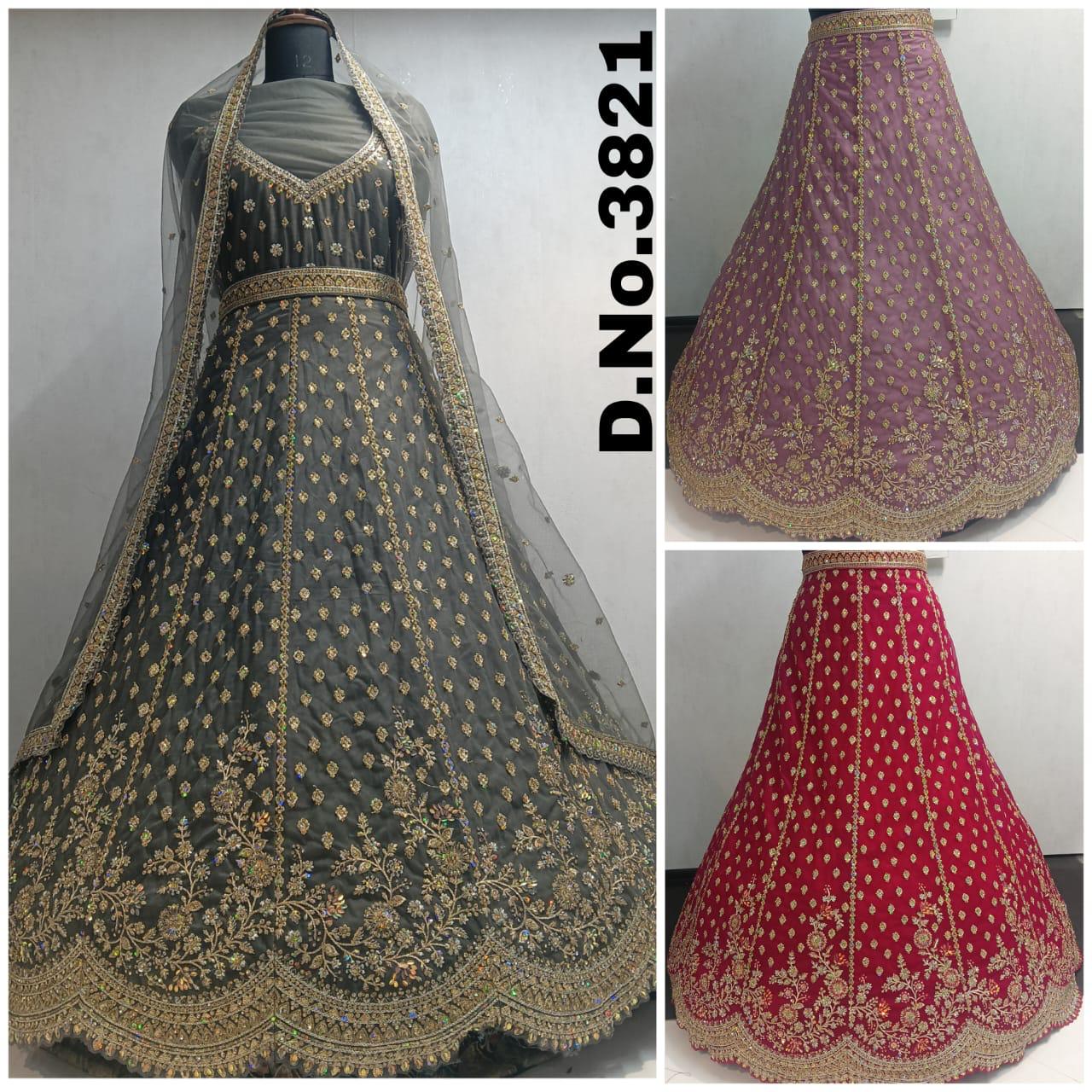 The lehenga is crafted from high-quality fabric, likely net or a sheer material, ensuring a graceful drape and comfortable wear. It is adorned with intricate embellishments, featuring delicate thread work, sequin detailing, and possibly zari work, creating a luxurious and eye-catching effect. The detailed work is prominently featured along the lehenga skirt, choli (blouse), and dupatta, enhancing the overall appeal.